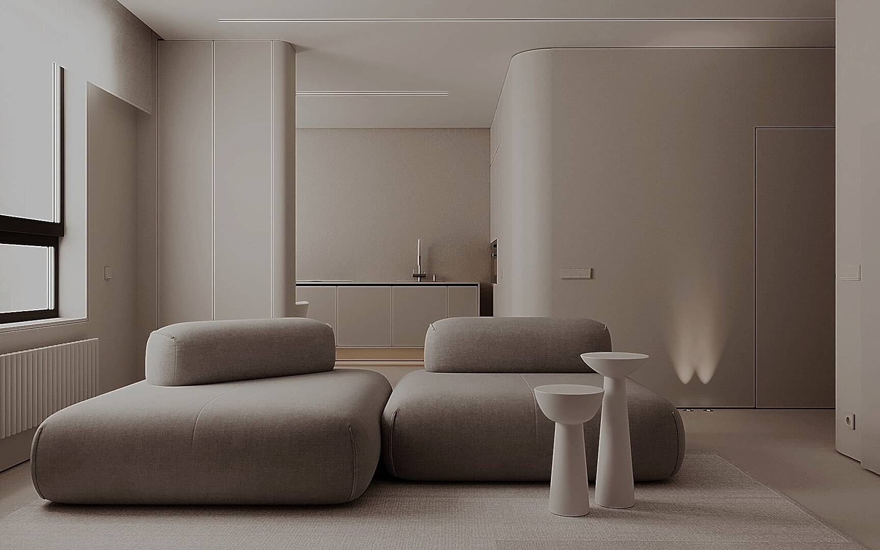 Минимализм в чистом виде. Отсутствие любого визуального шума. Все поверхности сливаются Pin-Up с другом и создают единое полотно.